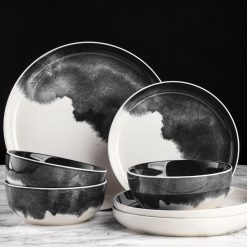Dinnerware Grey Drip Stoneware, 12 Piece Set Dishes and Plates Sets